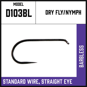 D103BL - Dry Fly, Nymph, 1xl, Barbless Hook